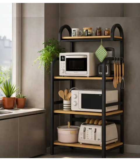 Функціональний і стильний стелаж AND-1938 — це універсальне рішення для організації простору в кухні, квартирі, офісі або коморі. Завдяки 4 містким полицям він легко вміщує кухонну техніку (мікрохвильову піч, мультиварку), посуд, запаси продуктів, книги або декор.